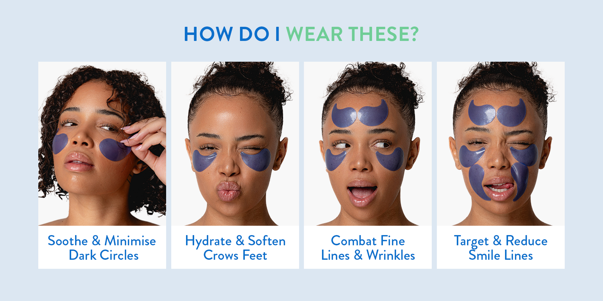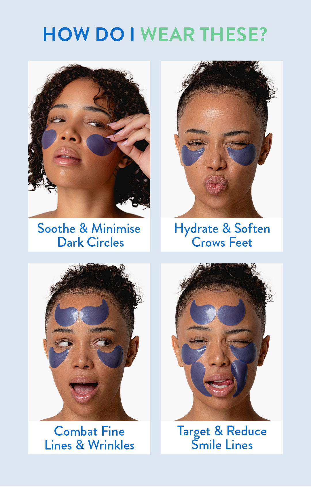 Using the spatula, separate masks and gently apply to clean under eyes, one at a time. Leave for 10-20 minutes, remove and discard. Gently massage the remaining serum into the skin.